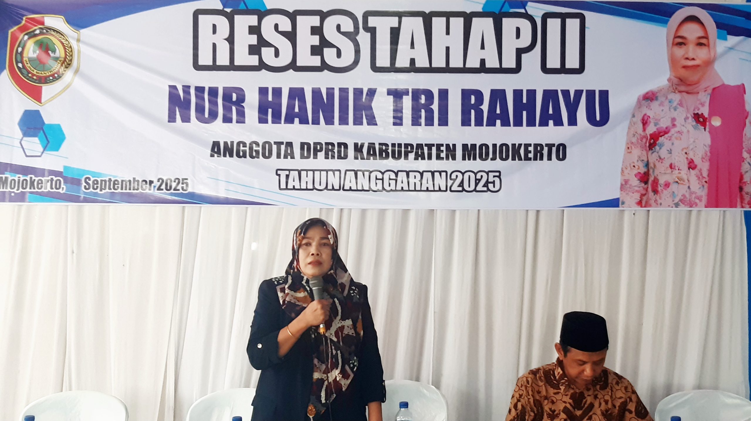 MOJOKERTO ~ Reses tahap II tahun anggaran 2025, Nur Hanik Tri Rahayu, anggota DPRD Kabupaten Mojokerto, menjaring aspirasi masyarakat di daerah pemilihannya (Dapil) 1 Mojokerto, sabtu siang 06/09/2025.
