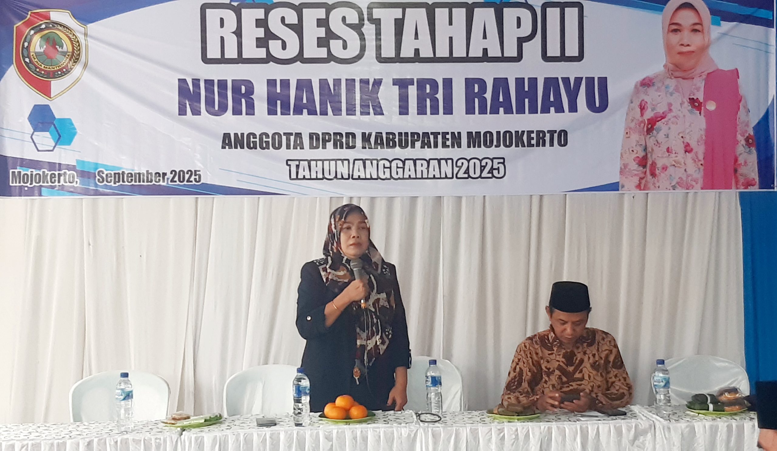 MOJOKERTO ~ Reses tahap II tahun anggaran 2025, Nur Hanik Tri Rahayu, anggota DPRD Kabupaten Mojokerto, menjaring aspirasi masyarakat di daerah pemilhannya (Dapil) 1 Mojokerto, sabtu siang 06/09/2025.